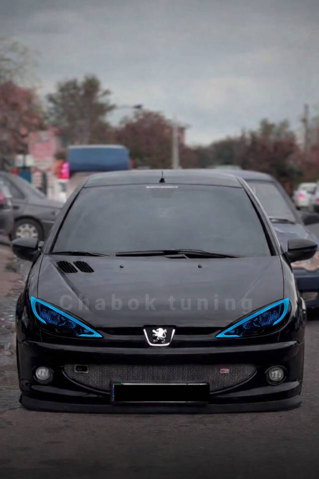 ست چراغ اسپرت 206 جلو کادنزایی آیس بلو داخل مشکی و خطر 207 آیس بلو طلق دودی