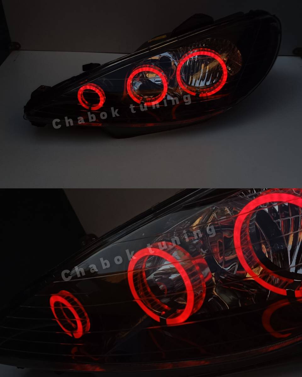 چراغ جلو پژو ۲۰۶ نئون گلس شفاف سه رینگ قرمز
