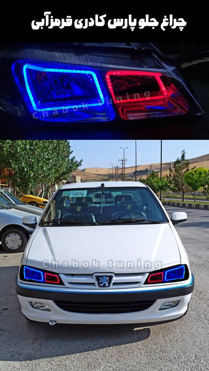 چراغ جلو پژو پرشیا طرح کادری سه بعدی آبی وقرمز