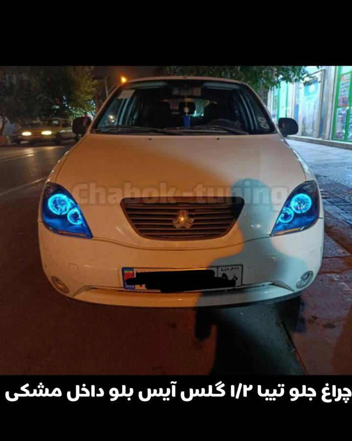 چراغ جلو تیبا 1 و2 گلس آیس بلو داخل مشکی