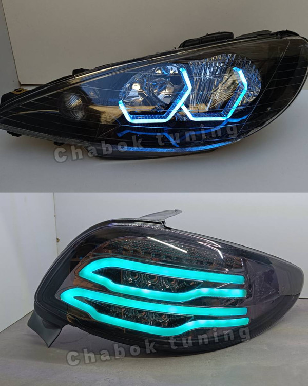 ست چراغ اسپرت پژو 206 جلو i8 آیس بلو و خطر بنزی دودی نئون آیس بلو
