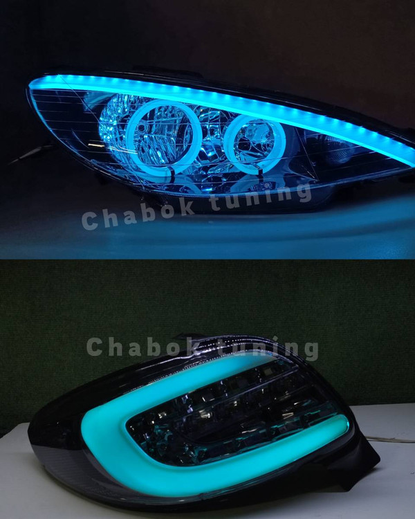 ست چراغ اسپرت پژو 206 جلو دورینگ ابرو مات آیس بلو و خطر207دودی نئون آیس بلو