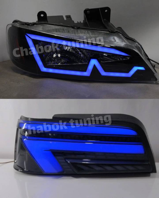 ست چراغ سپرت پژو پرشیا رنگ آبی جلو طرح M و خطر دودی NX