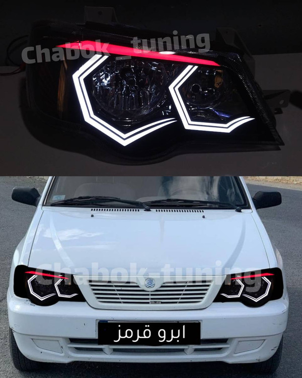 چراغ جلو پراید 111/132 طرح شش ضلعی ابرو قرمز