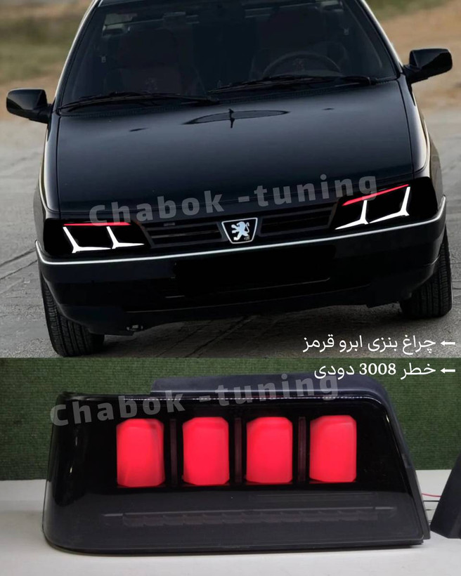ست چراغ اسپرت پژو 405 جلو بنزی ابرو قرمز و خطر 3008 دودی