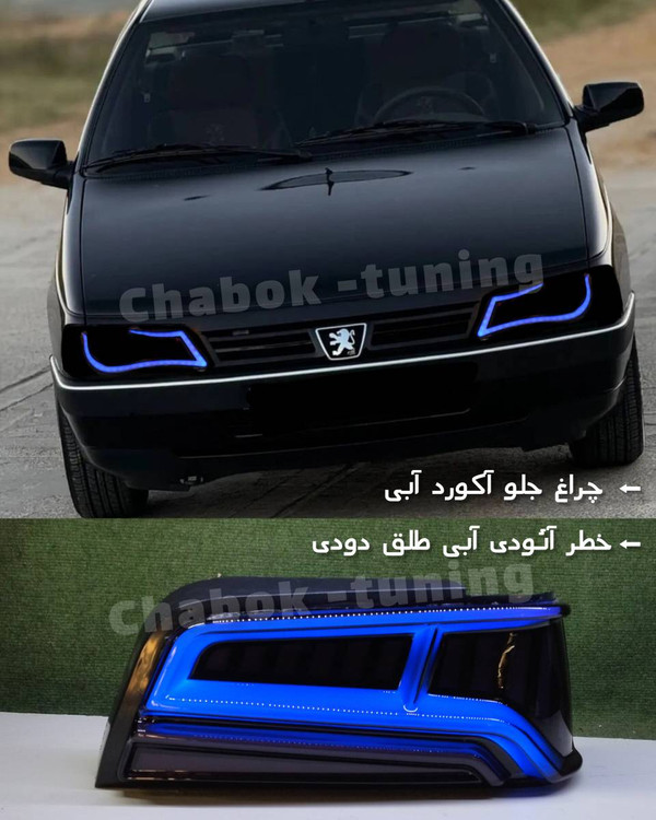 ست چراغ اسپرت پژو جلو آکورد آبی و خطر آئودی آبی طلق دودی