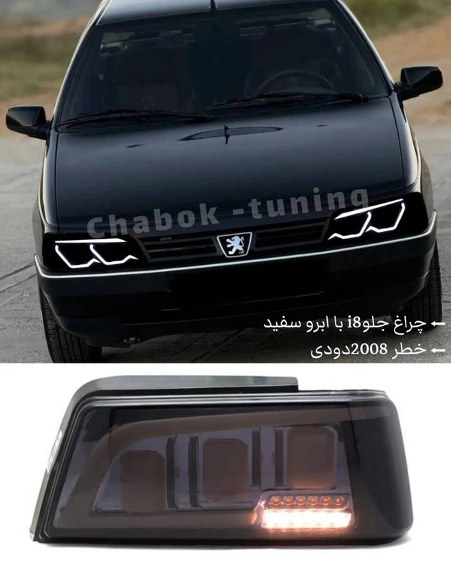 ست چراغ اسپرت پژو 405 جلو i8 با ابرو سفیدو خطر 2008 دودی