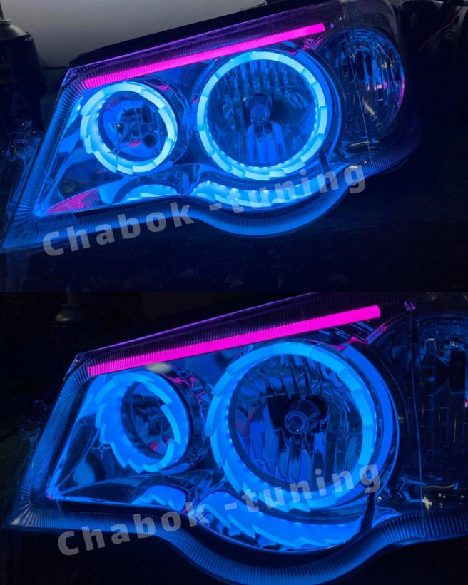 چراغ جلو پراید 132/111طرح رینگ آتیشی آیس بلو با ابرو یاسی