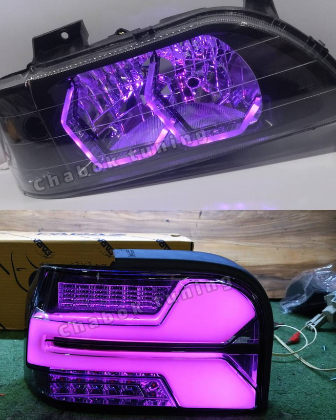 ست چراغ اسپرت پراید جلو i8 سه بعدی بنفش و خطر لامبورگینی بنفش دودی