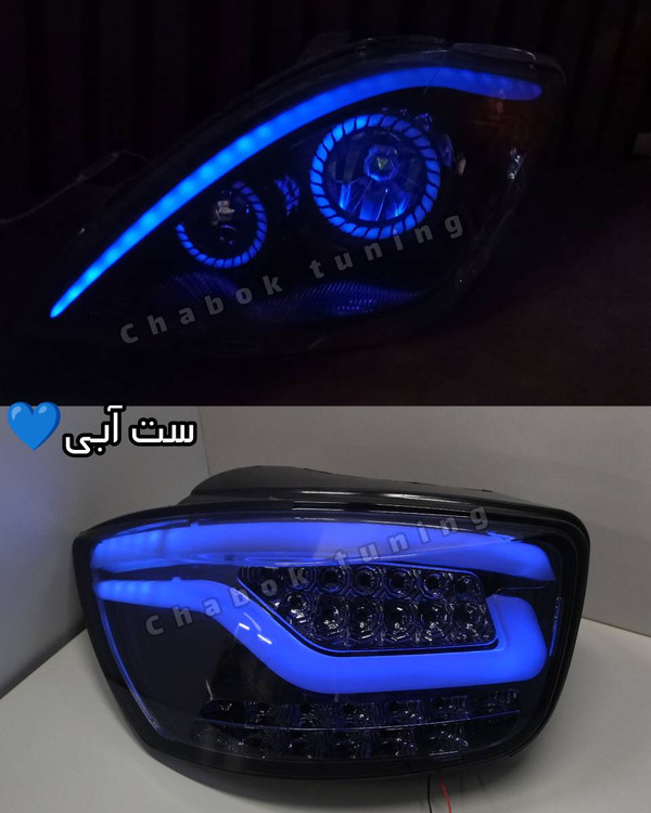 ست چراغ اسپرت تیبا 2 جلو گربه ای آبی و خطر کادنزایی آبی