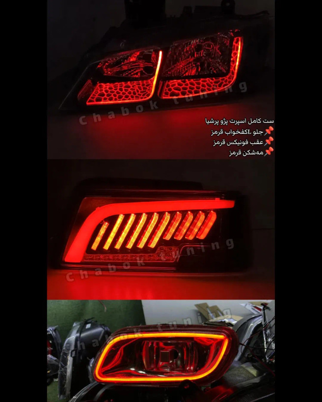 ست کامل چراغ اسپرت پرشیا رنگ قرمز جلو ال کفخواب و مهشکن نئون دار و خطر فونیکس قرمز
