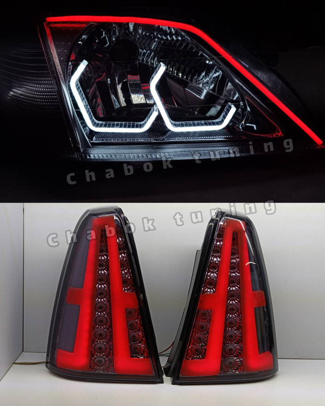 ست چراغ اسپرت ال90 جلو i8 سه بعدی سفید با ابرو قرمز و خطر ایفلی دودی