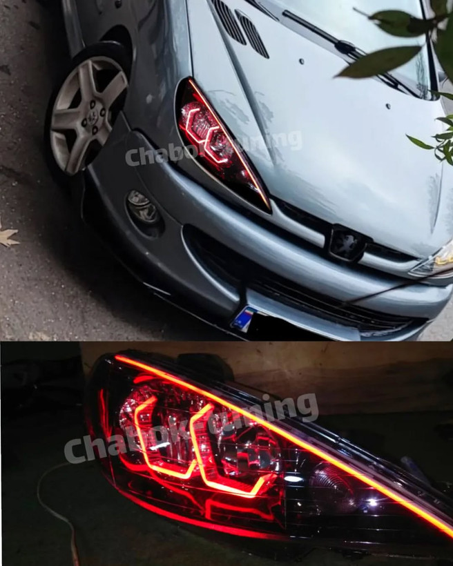 چراغ جلو پژو 206 طرح i8 سه بعدی با ابرو قرمز