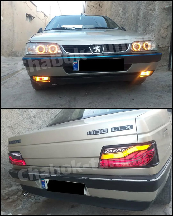 ست چراغ اسپرت پژو 405SLX جلو گلس انبه ای داخل کروم و خطرBMWدودی هاشوردار