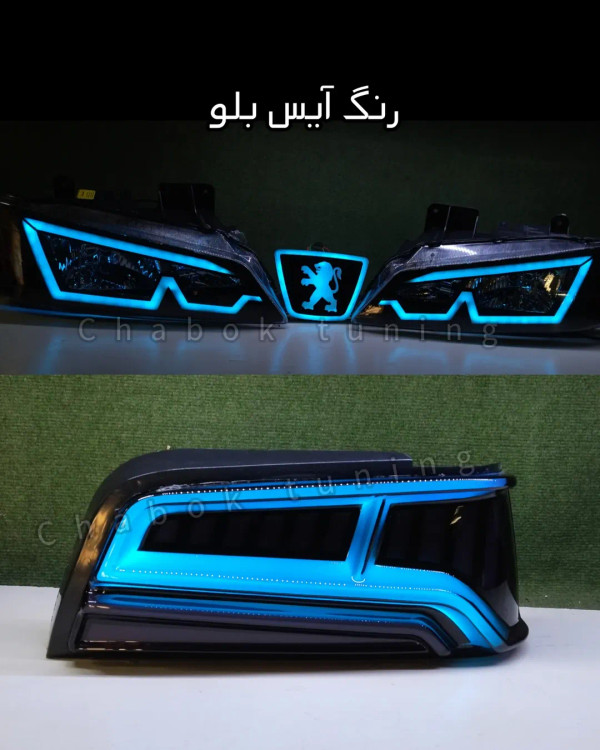 قیمت برای یک جفت چراغ جلو و آرم و خطر آئودی دودی رنگ آیس بلو میباشد