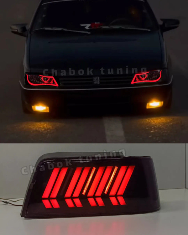 ست چراغ اسپرت پژو 405 جلو آکورد با حلقه قرمز دوکاسه و خطر 408 دودی